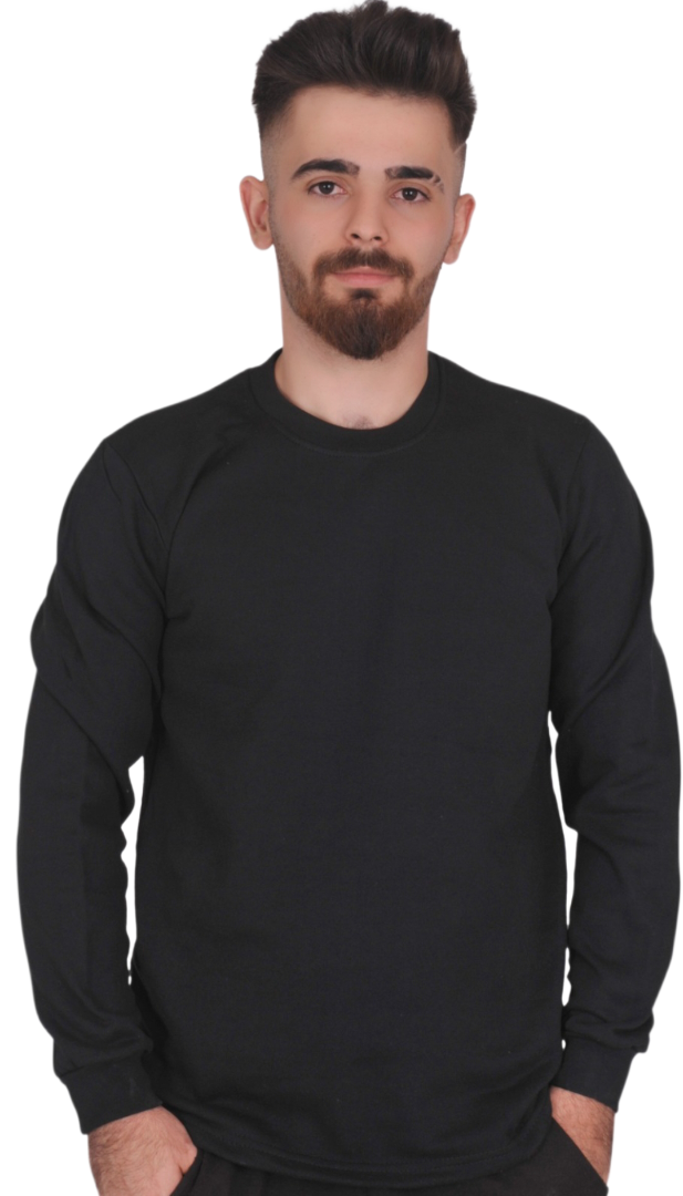2iplik Siyah Bisiklet Yaka İş Sweat